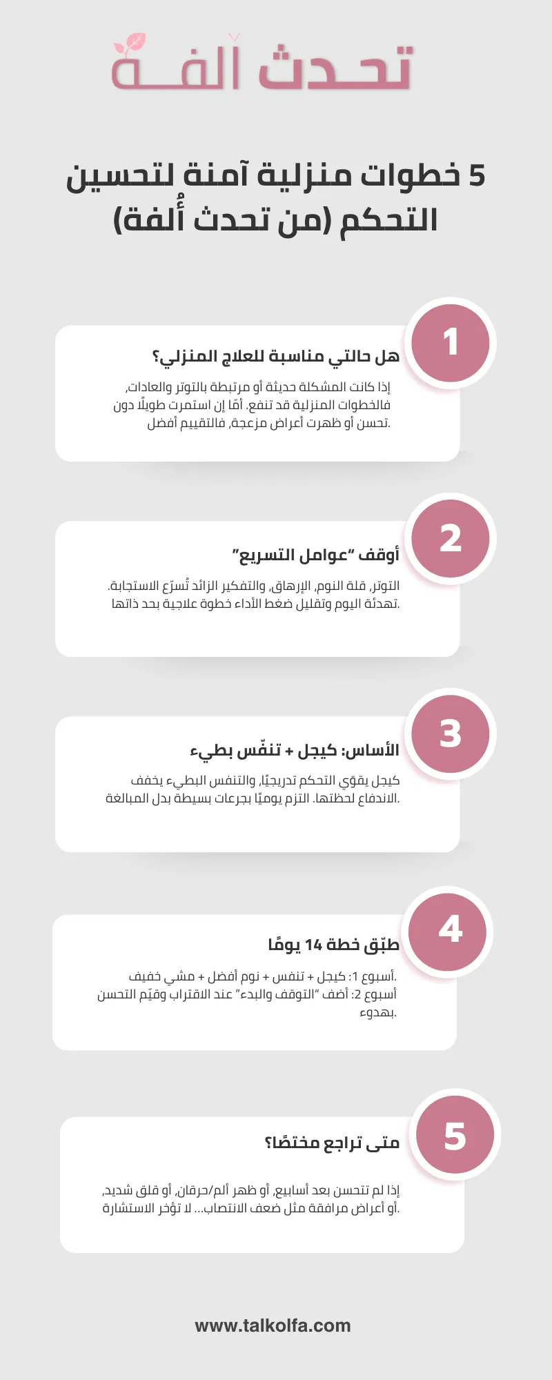 الفكرة بسيطة: العلاج المنزلي ممتاز عندما يكون الأمر خفيفًا أو مرتبطًا بالتوتر والعادات، لكن عند وجود مؤشرات واضحة، التقييم المختص يختصر الطريق ويمنع تضخّم المشكلة.